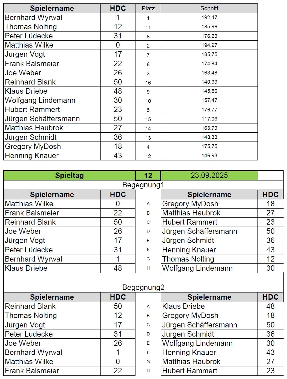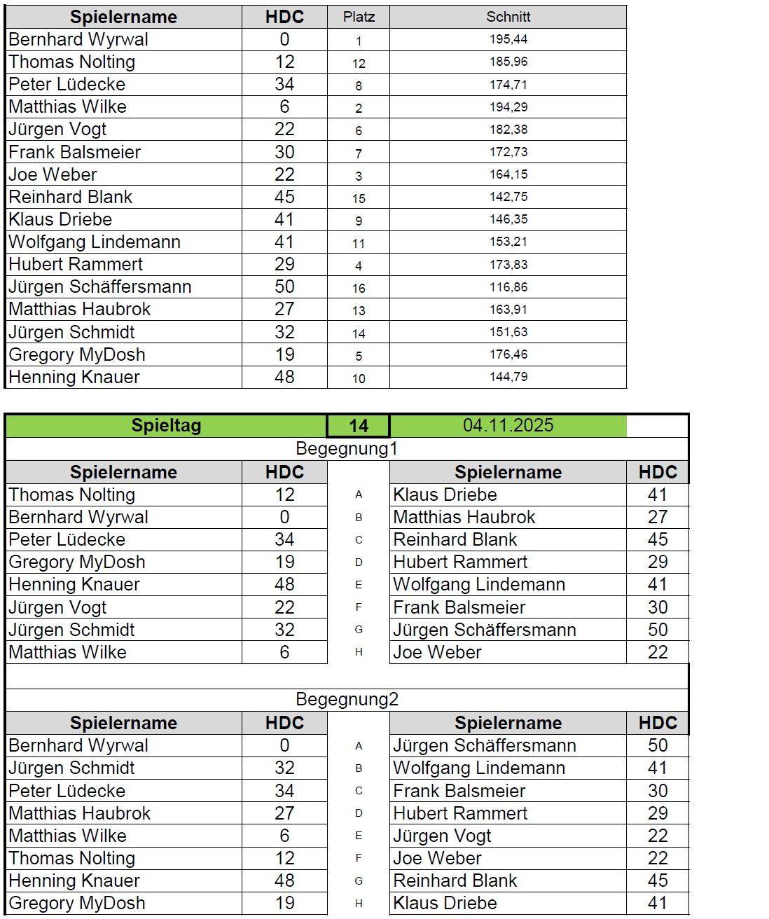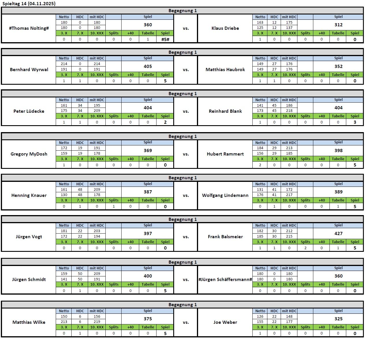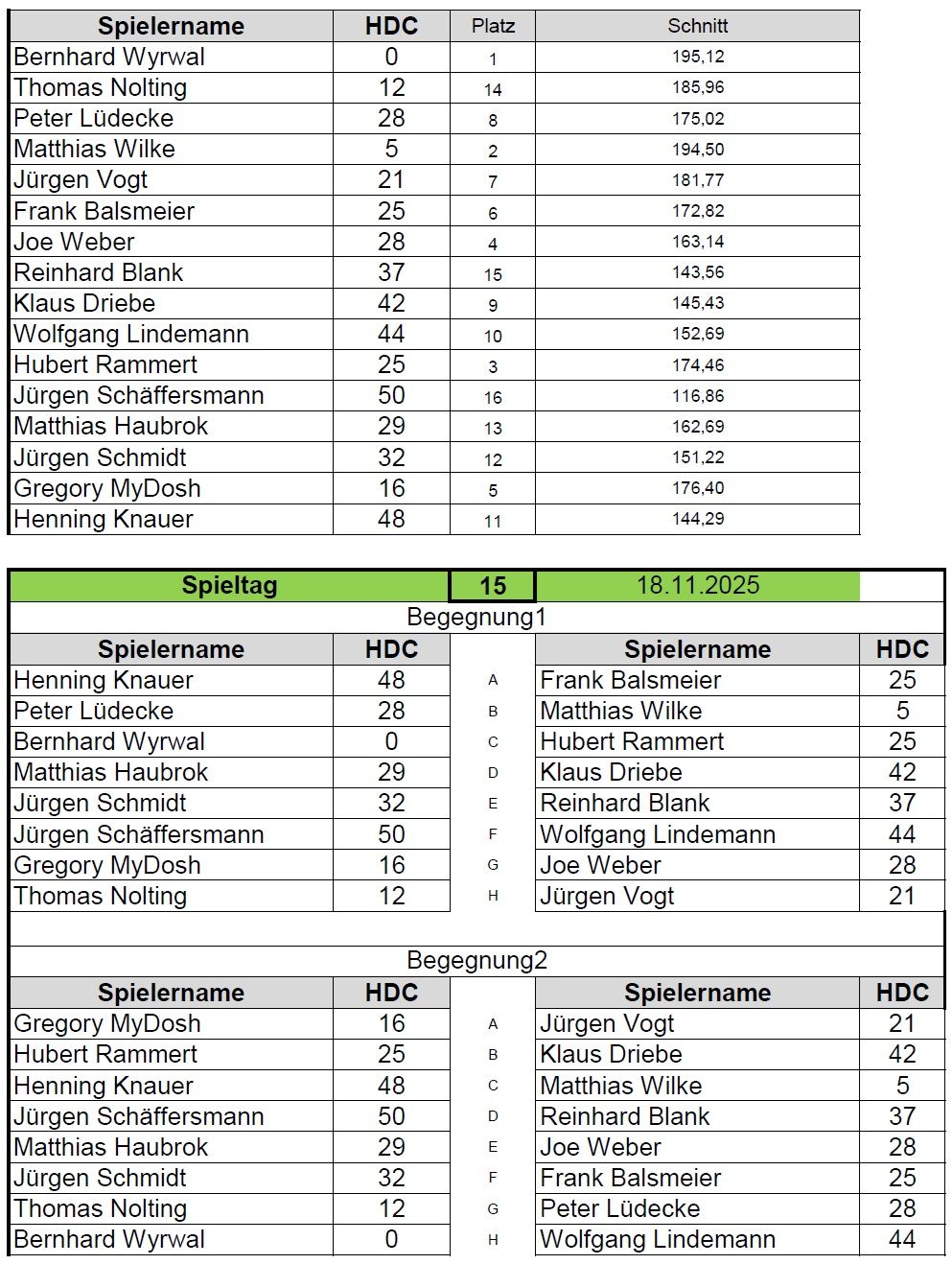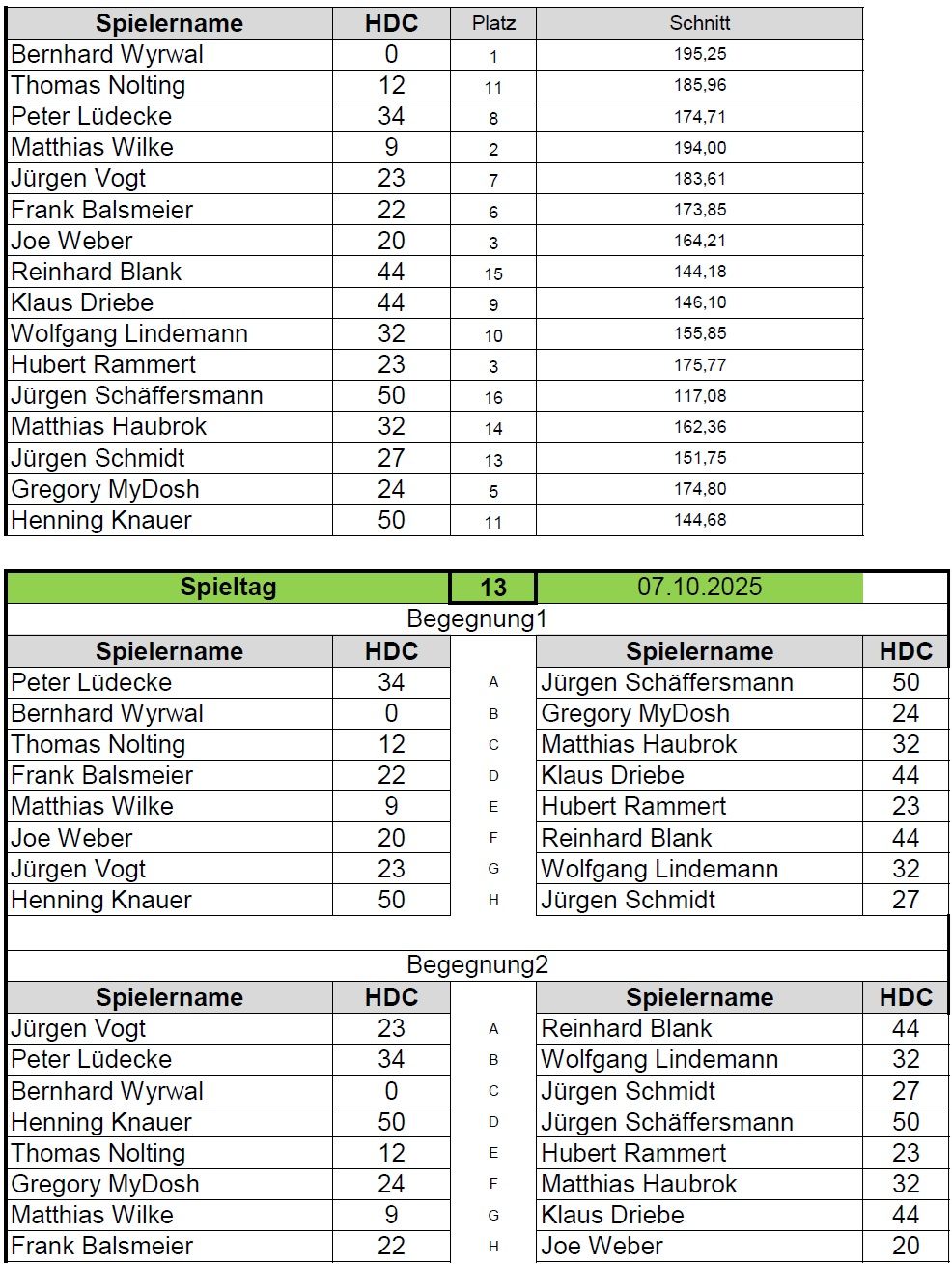 Vergangene Spieltage